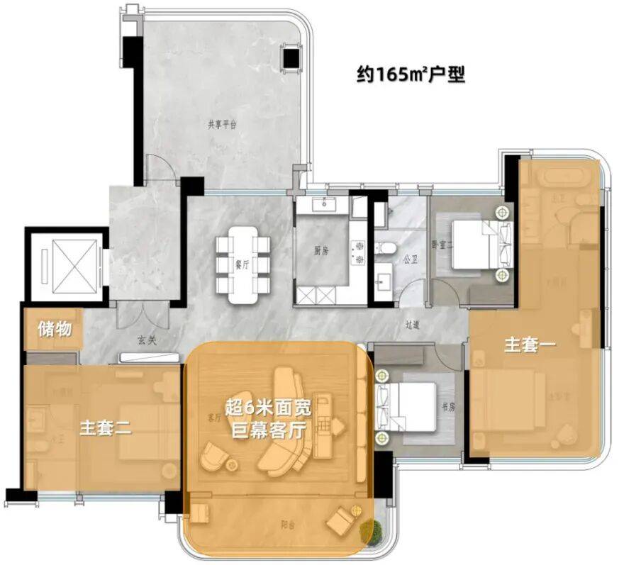 建面约 90㎡三房两厅两卫户型,作为珠江新城时隔近 20 年来的首个 “新规 90 平方米户型” 产品,全盘仅 80 套推售体量,目前剩余可售房源不足 10 套,稀缺性不言而喻。该户型设计紧凑实用,空间利用率高达 88%,主卧配备独立卫生间与步入式衣帽间,满足改善型需求;建面约 210㎡五房两厅四卫户型为项目楼王户型,剩余房源仅 5 套,分布于 1 号楼、2 号楼核心位置,专属电梯入户,私密性与尊贵感拉满,客厅采用 7.2m 超大面宽设计,搭配 2.4m 进深观景阳台,尽享一线江景与城市天际线双重景观。